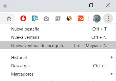 Abrir nueva ventana de incógnito en Chrome