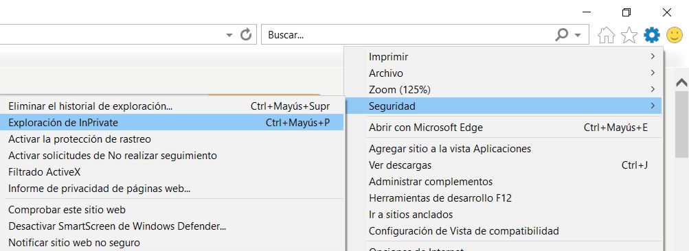 Activar exploración de InPrivate en Explorer