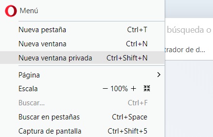 Abrir nueva ventana de incógnito en Opera